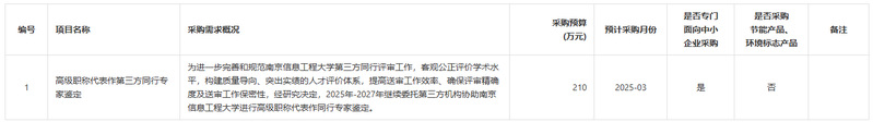 为便于供应商及时了解政府采购信息,根据《江苏省财政厅关于做好政府采购意向公开工作的通知》等有关规定,现将南京信息工程大学2025年2月(第1批)政府采购意向公告如下: