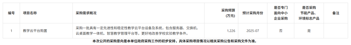 为便于供应商及时了解政府采购信息,根据《江苏省财政厅关于做好政府采购意向公开工作的通知》等有关规定,现将南京信息工程大学2025年7月(第6批)政府采购意向公告如下: