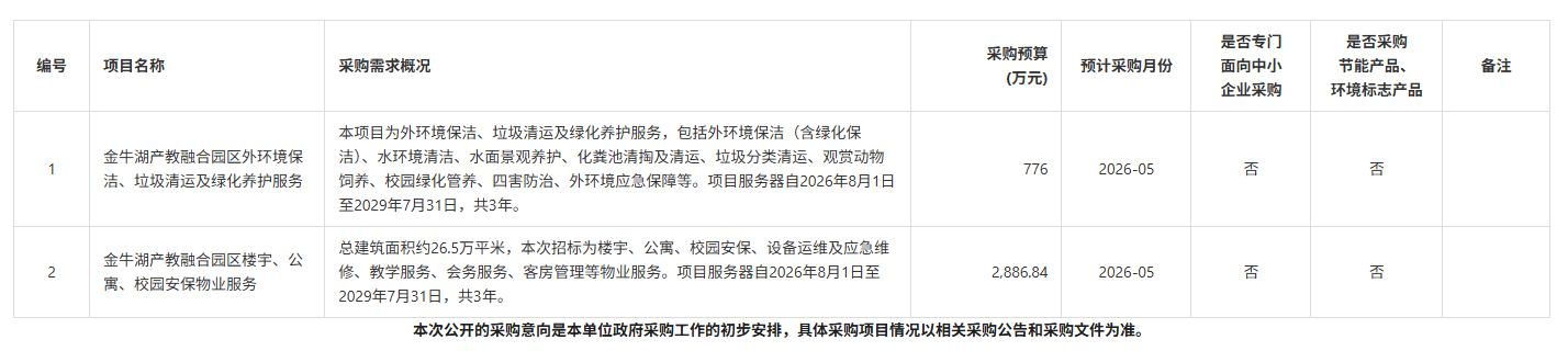 为便于供应商及时了解政府采购信息,根据《江苏省财政厅关于做好政府采购意向公开工作的通知》等有关规定,现将南京信息工程大学2026年3月(第4批)政府采购意向公告如下: