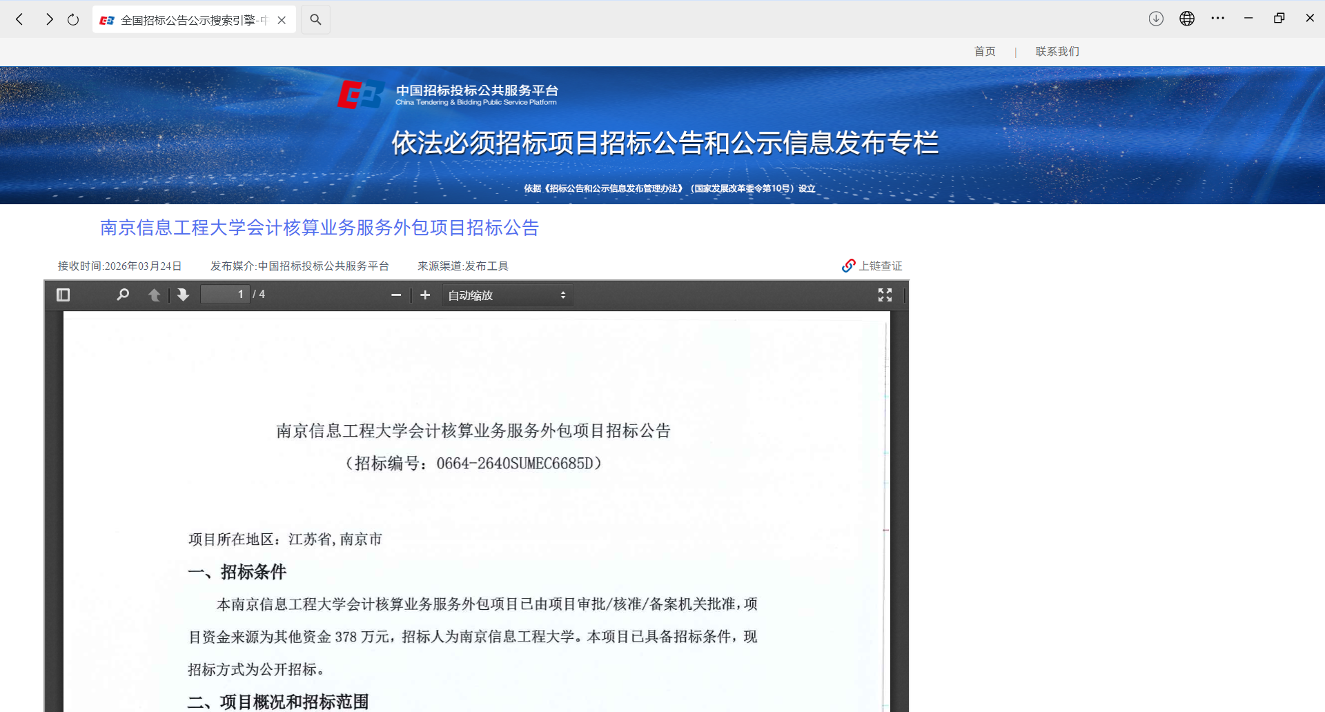 南京信息工程大学会计核算业务服务外包项目招标公告网页截图.png