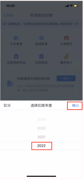 ⑶选择扣除年度为2022,点“确认”