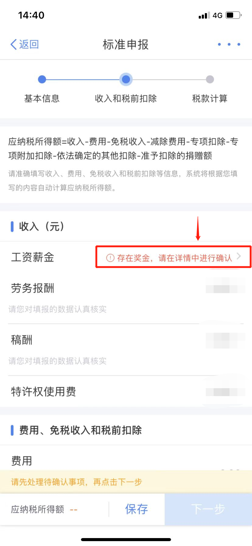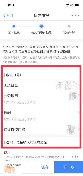 注意:如点击“我需要填报空白申报表”则需要手动填写:收入、专项附加扣除等信息。