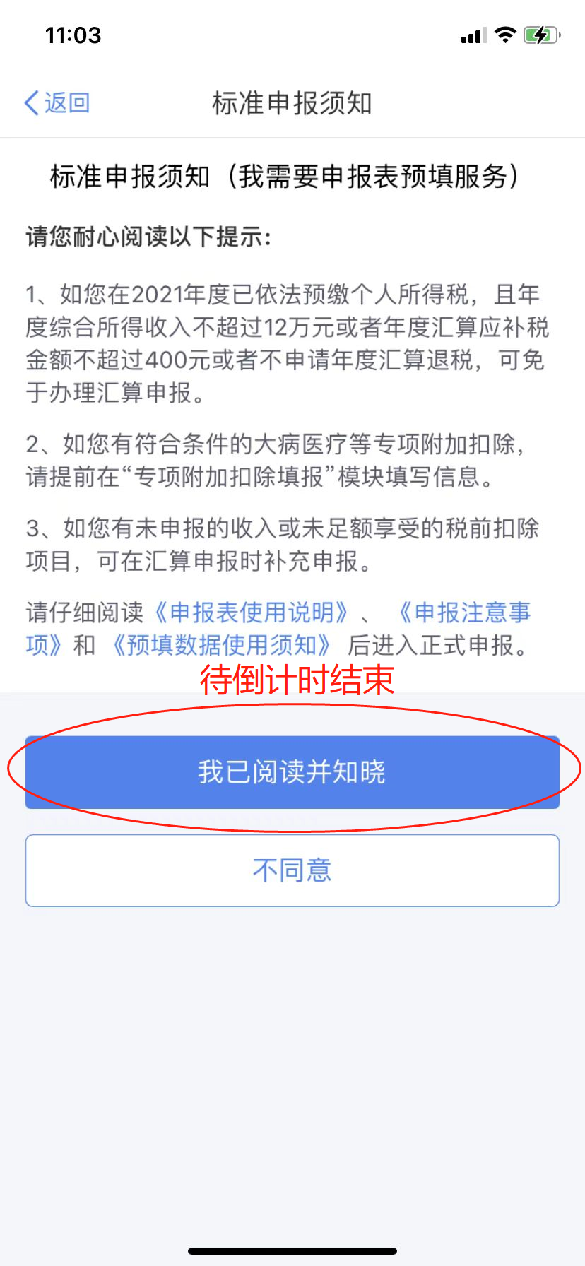 (四)阅读申报须知,倒计时结束后,点击“我已阅读并知晓”。