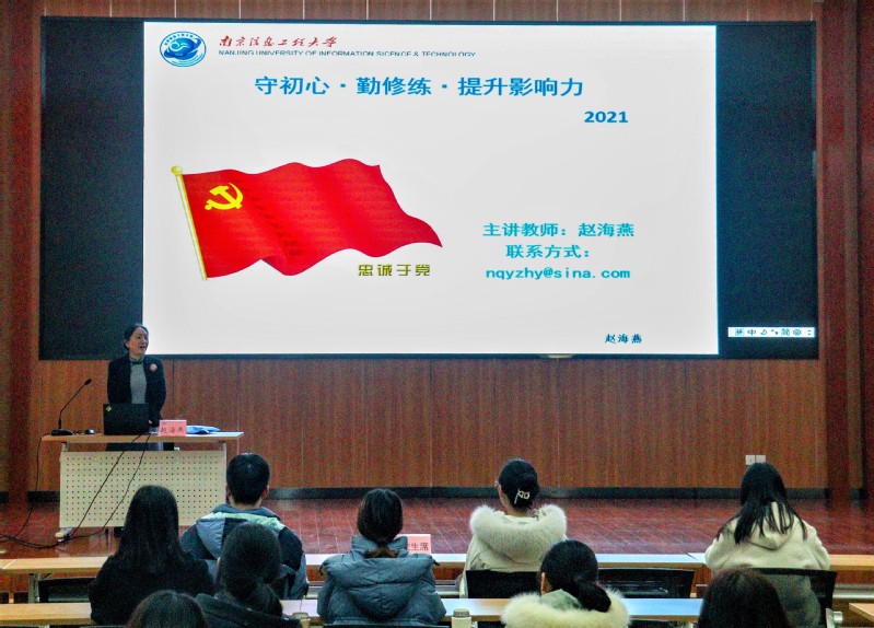 赵海燕教授首先向大家解读了中国共产党人的初心和使命,即“为中国人民谋幸福、为中华民族谋复兴”,并通过介绍马克思主义在中国的传播过程以及中国共产党人光辉的奋斗历程,指明当代青年学子要胸怀爱党爱国之心,自觉践行社会主义核心价值观。接着,赵教授从自觉融入组织文化、不断挑战自我潜力、拥抱个人生活学习、提高思想政治素质等方面激励在场同学要勤于修炼,积极完善品德修为,增强自身综合修养。最后,赵教授强调了沟通的重要性,她阐释了“准确性、完整性、及时性、策略性”这四大沟通原则,并向大家介绍了倾听的技巧,以此帮助在场同学提升沟通效能,助力他们全面成才。赵教授表示,青年人继承着一个国家的青春脉络,更承载着民族的希望和未来,青年学子要坚守初心、不懈耕耘、勇于拼搏,在实现中国梦的伟大实践中创造自己的精彩人生。