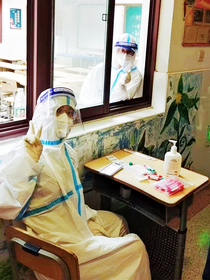 换上一身防护服,他们就变成了前线最勇敢的战士。在街道和社区的核酸检测现场,志愿者们意志坚定、认真负责,协助医护人员开展信息采集、队伍引导、秩序维护等工作。在疫情发生后的第一时间,来自2019级汉语言文学(师范)专业的陈杨便报名加入了社区志愿服务队伍,家住南京市江宁区的她用满腔的信念守护着家乡人民的健康安全,“时代的责任属于青年,时代的光荣属于青年,我要在最关键的时刻贡献力量!”无私的奉献,执着的坚守,蓬勃上进的青年学子在行动中诠释着对祖国、对人民“清澈的爱”。