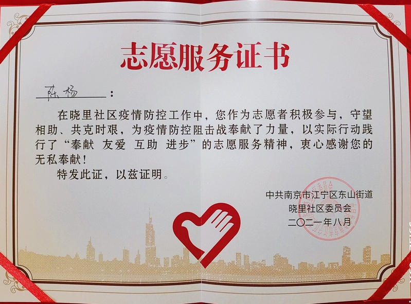 一名志愿者就是一点星火,一批志愿者便是燎原之势的力量。在平凡而琐碎的服务工作中,来自2020级英语(师范)专业的张书云把无限的爱与关怀带进了邻里心中,“我想为这座城市发光发热,与大家一起共渡难关。”青年学子们秉承着“奉献、友爱、互助、进步”的志愿精神,为社区居民筑起一道坚不可摧的保护墙。“志愿者是爱心和希望的传递者,应当用真情服务他人”,2020级地理科学(师范)专业的陈曦在辛勤付出的同时也收获着喜悦,他相信,全城人民众志成城,疫情就一定能尽快被打败。