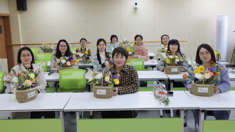 提升品味,陶冶情操,增进友谊,3月8日下午,教师院分工会组织女教职工开展插花活动。花艺老师详细讲解了花材特点、枝叶剪裁、色彩搭配等方面的要点,并现场进行插花展示。在花艺老师的精心指点下,一篮篮错落有致、生机盎然的插花作品展现在大家面前。插花完成后,大家手捧鲜花留下美丽瞬间。在四溢芬芳和盈盈笑语中,女教职工享受了插花艺术的魅力,增强了凝聚力向心力。