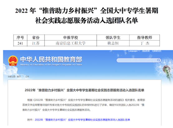 7月6日,教育部发布《2022年“推普助力乡村振兴”全国大中专学生暑期社会实践志愿服务活动入选团队名单》,教师教育学院“甘肃云程支教”社会实践团队成功入选。