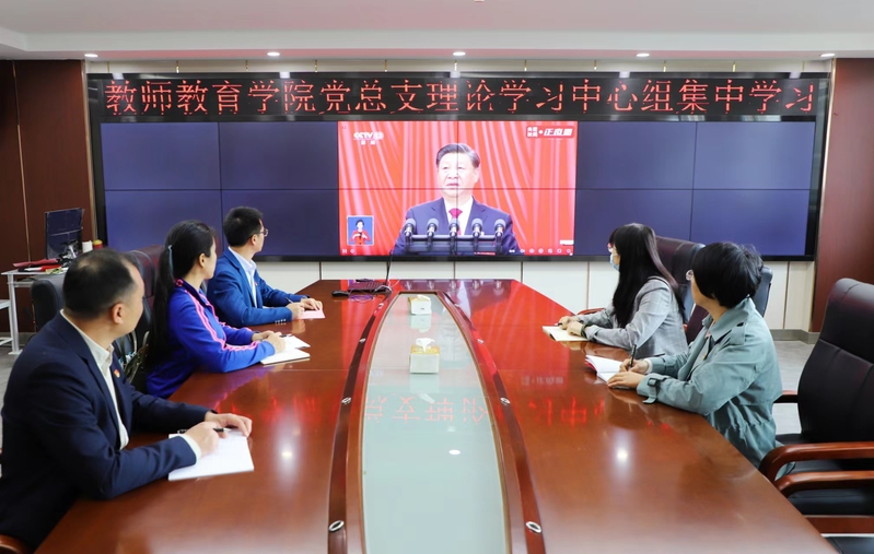 10月16日,中国共产党第二十次全国代表大会在北京隆重召开。上午10时,教师院党总支理论学习中心组在揽江楼S601集中收听收看二十大开幕会盛况,第一时间学习领会大会精神。