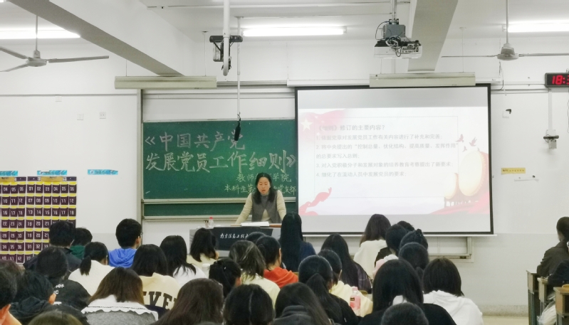 张昳丽老师向学员解读了《中国共产党发展党员工作细则》,并从发展党员的总要求、发展党员工作基本程序和注意事项以及发展党员主要材料的书写要求三个方面出发,认真详细地阐明了发展党员的几个阶段,通过现场情景演绎让学员们明白了发展党员的规范性、严格性,希望入党积极分子提高自我认识,树立规范入党意识。