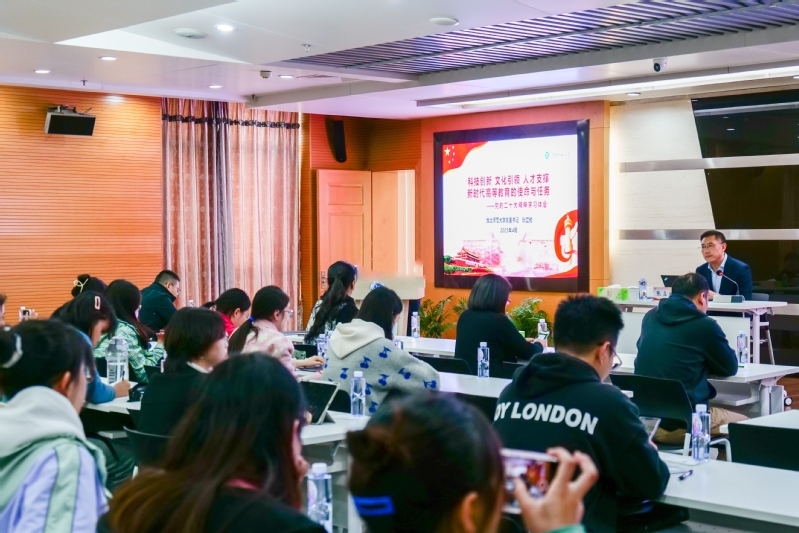 张立驰书记在党的二十大报告中提出的科技是第一生产力、人才是第一资源、创新是第一动力这个宏观背景下,结合大量实例和数据就科技创新、文化引领、人才支撑三个方面进行了系统阐述。第一科技创新,科学研究是高校的重要职能之一,大家要立足自身学科优势,围绕一带一路,加大国际科研合作,在创新体制和创新文化上下功夫;第二文化引领,文化传承是高校的另一重要职能,高校要围绕社会主义强国建设,主动作为,成为社会主义先进文化的建设高地;第三人才支撑,人才培养是高校的核心职能,以立德树人为中心,坚持为党育人,为国育才。他就三个方面面临的问题进行深入分析并提出了详尽的解决思路。张书记以其深厚的理论素养、广博的研究视域、高超的教授技巧奉上了一堂精彩的讲座,学员们认真听讲,纷纷表示受益匪浅。