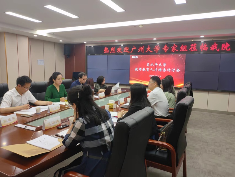 张涛处长简要介绍了广州大学的办学传统、校区分布、教师队伍和发展现状,热切表达了深入了解我校成立教师教育学院时代背景、教师考核、学生培训、学院管理等方面情况的迫切愿望,此次调研将作为广州大学筹办教师教育学院可行性论证重要依据。