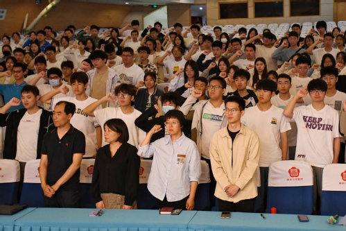 学习行知精神,誓言献身教育。由教师院2022级化学(师范)乡村定向师范生钱雨萌、2020级定向师范生刘柯彤作为学生代表发言,她们倡议师范生们加强对教育理念和教育情怀的培养,提高自身教育能力,积极参与教学实践。他们号召全体定向师范生用行动和语言书写一份精彩的大学生活,为未来的教育事业奠定坚实基础。两位学生代表带领师范生们进行庄严宣誓,师范生们志愿成为一名“四有”好老师,为教育发展、国家繁荣和民祖振兴努力奋斗。
