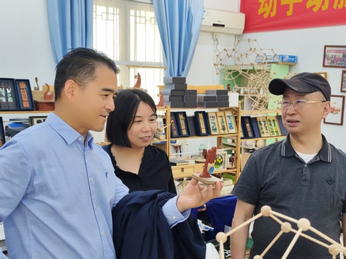 追寻教育痕迹,踏上行知之路。教师院的师生们自由参观行知基地,大家在展览体验馆中瞻仰陶行知先生的雕塑,在展示屏上探寻行知先生的教育经历,穿行于各具特色的展览室中,恐龙化石、海洋古生物的印记、再也难寻的植物都现于眼前,消防知识也以生动有趣的游戏形式呈现。参观老校舍时,行走于四十年前的红砖路上,爬山虎已盘满低矮的墙壁,曾经种下的小树苗已经长成大树,荷花池也已覆满绿萍。在多样化的教室中感受中医学,陶瓷手工的魅力,联合线上会议似乎又在眼前重现。参观时,杨瑞清校长与严师傅还向熊院长展示行知学校学生们的手工作品,体会孩子们动手动脑的过程。“纸上得来终觉浅,绝知此事要躬行”,参观后,师范生们领悟到教育发展之路的艰辛,感悟到行知精神的崇高,为他们未来助力乡村教育注以源源不断的动力。
