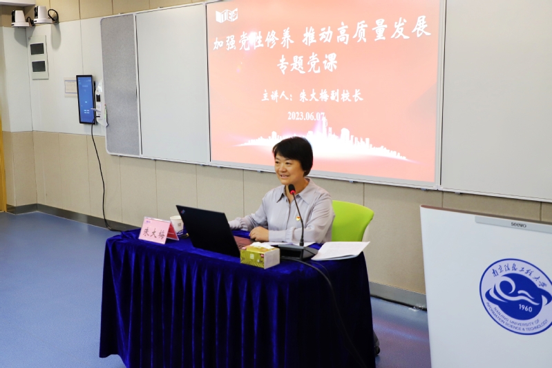 朱大梅结合主题教育自身学习体会和学校工作实际,围绕“准确把握党性的科学内涵”“党员要自觉加强党性修养”“以坚强党性推动高质量发展”三个部分阐述了如何加强共产党员党性修养。朱大梅强调,作为党员要自觉加强党性修养,并从加强政治修养,强化党的意识;加强理论修养,坚定理想信念;加强道德修养,坚守精神高地;加强纪律修养,敬畏尊崇党章;加强作风修养,密切联系师生六个方面梳理了加强党性修养的有效途径。在谈到作风建设时,朱大梅和大家分享了20年前习近平同志主导创造、身体力行的实践经验—“浦江经验”,“浦江经验”充分彰显了人民领袖一以贯之的为民情怀、务实作风、担当精神。她要求广大党员干部要学习借鉴“浦江经验”,站在服务师生的最前沿,架起党和群众“连心桥”,筑牢基层治理“桥头堡”,群众的事再小也是大事,面对面做群众工作是最管用的方法,要坚持深入基层、沉到一线,要敢往矛盾窝里钻,担当作为攻坚破难把工作干到师生“心窝里”。