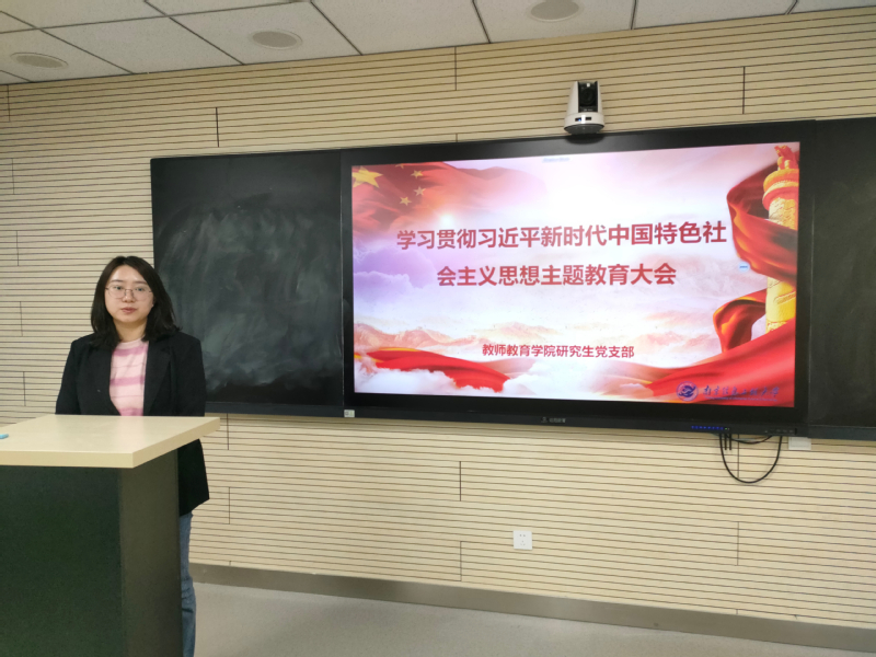 随后,研究生党支部副书记徐诚同学对习近平新时代中国特色社会主义思想主题教育工作会议上的讲话内容进行学习分享感悟,从加强理论、提升修养、团结奋进、积极担当、自我革新等方面与支部党员进行分享,并表示将为助力美丽中国建设贡献教师院学子的智慧。