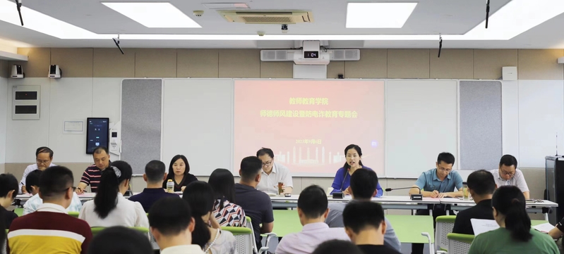 9月6日下午,教师教育学院于揽江楼S501召开学院师德师风建设暨防电诈教育专题会,学院全体教职工出席,会议由学院党委书记李霞主持。