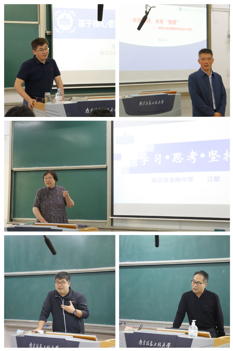 五位老师结合自身教研经历,面向师范生传授了全面提升教师素养的经验。杨华军做了题为《未来教师,未来“悟”理——畅想未来物理教师的角色与素养》的专题讲座,总结了包括“科技与在线教育”“个性化教学”“跨学科学习”等在内的未来学校教育十大特征,并对核心素养进行解读。江敏老师做了题为《学习·思考·坚持》的专题讲座,鼓励同学们将化学学科知识的教学与审慎而积极的科学精神、社会责任和生活态度相融合。邢文骏老师做了题为《英语教学中提升学生学科核心素养的实践路径》的专题讲座,紧扣英语学科核心素养与单元整体教学,深入浅出地阐述了素养时代单元整体教学的理论基础与实施路径,并结合自身教研经历,分享了极具建构意义的个人思考与生动详实的案例。马一新校长做了题为《蓄势未来发展,涵养教育情怀》的专题讲座。他强调,想要做好数学教育,必须要理解数学教育,“四个理解”是落实核心素养的关键,即“理解数学”“理解学生”“理解教学”“理解技术”。庞冉老师,做了题为《阅读安身,专业立命》的专题讲座。庞老师结合生动的教学案例,指出阅读与思考的重要性,强调教育和管理的区别,呼吁同学们以知识分享者的姿态,做新时代人民教师。