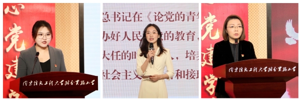 南信大附小党总支书记郑妍对“澄心党建学院”项目实施方案进行了详细解读。附小青年党员教师黄睿琪以《青衿之志,履践致远》为题,从“纯粹信仰”“优秀品格”和“昂扬斗志”三个方面号召各位青年党员在“澄心教育”理念的引领之下,以赤诚之心、奉献之心、仁爱之心投身教育事业。