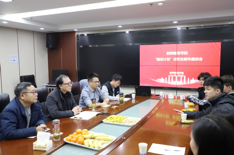 为更好了解“国优计划”研究生学习情况、学习收获及困惑,推进“国优计划”研究生培养高质量发展,1月5日下午,教师教育学院在揽江楼S601会议室举行“国优计划”研究生新年座谈会,与“国优计划”同学们畅谈心声、共话成长。教师教育学院院长杨作东、院长助理刘铭、“国优计划”班主任老师宗国庆、研究生秘书以及“国优计划”研究生代表参加本次座谈,座谈会由副院长刘玉柱主持。