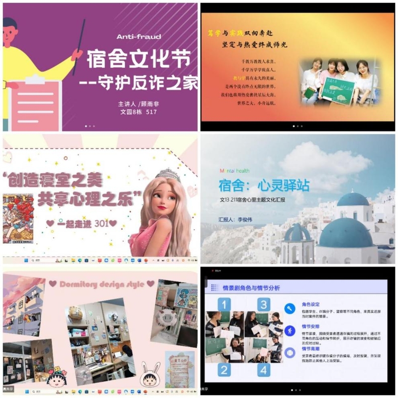 文化引领,举行宿舍评比活动。此次文化以反诈、学风、心理三个主题为切入点,鼓励学生自主设计宿舍文化,营造积极向上的寝室氛围。在同学们的积极响应下,涌现出大量富有特色的宿舍文化作品。经学院公示、学生讨论、学生自评等环节,评比出文园8栋517宿舍等6个反诈、学风、心理样本宿舍和模范宿舍长。