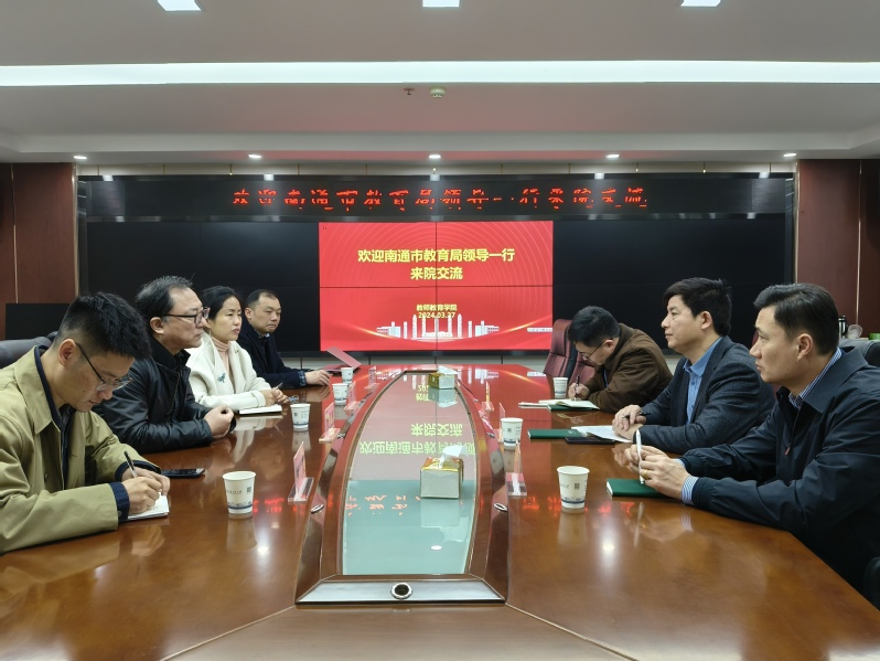3月27日上午,南通市教育局人事处陈新荣处长、曹正明副处长、南通市小海中学顾中华校长一行来我院座谈交流,院长杨作东、党委书记李霞、副书记副院长王平、辅导员陈晨参加座谈。