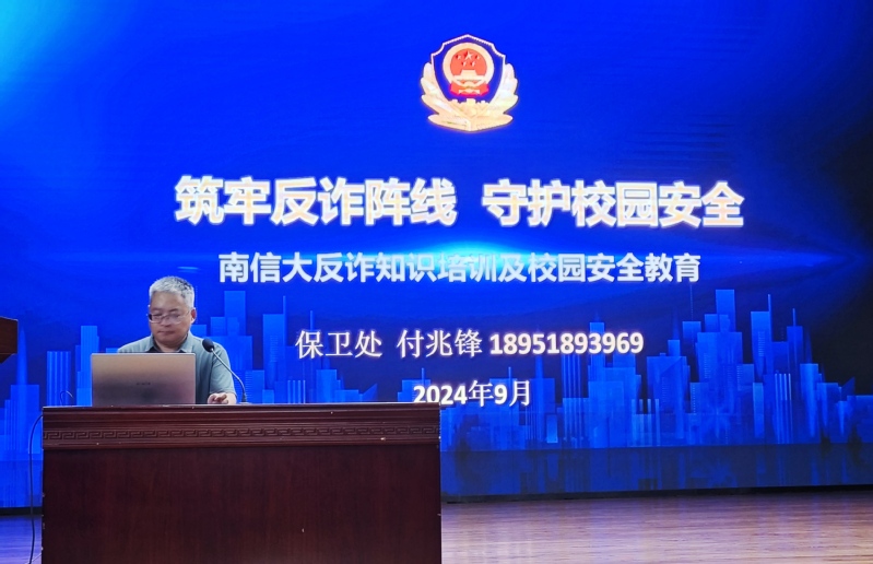 为切实强化新生的安全意识,提高新生防诈防骗能力,持续推进校园安全稳定工作,9月9日上午,我院特邀校保卫处处长付兆锋为学院大一新生开展了一场生动的防诈防骗暨安全教育讲座。我院全体新生及新生辅导员参加,讲座由学院党委副书记霍晓音主持。