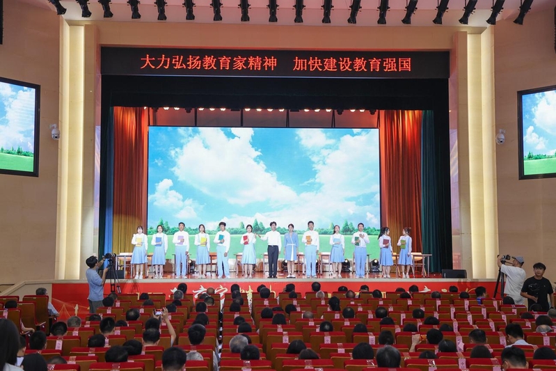 用旋律感念师恩,用歌声传递祝福。在学校庆祝第40个教师节暨表彰大会上,师范学子参与开场表演,倾情演绎《教师之歌》,用歌声诠释了对教师的祝福和感恩,在歌声中追寻培根铸魂的师道之光。教师院坚持以文化人,以文育人,潜移默化中植育师者初心,浸润教育家精神。
