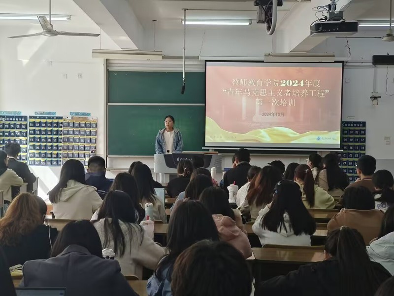为学习贯彻习近平新时代中国特色社会主义思想,引领学生思想发展,培养有理想、敢担当、能吃苦、肯奋斗的中国特色社会主义事业合格建设者和可靠接班人,10月25日,教师教育学院开展2024年度“青马工程”培训班开班暨第一次培训。2022级化学(师范)1班团支部书记、第四届江苏高校百校万名团干部思政技能大比武比赛一等奖获得者丁文雅主讲,院团委书记王峰老师出席培训,全体青马班学员参加培训。活动由院学生会主席团成员陈世杰主持。