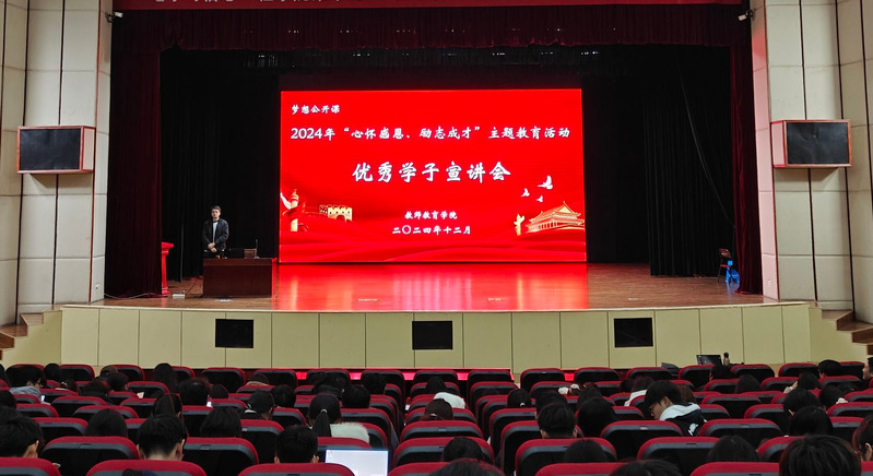 为引导2024级学生创先争优,追求卓越,12月9日,教师教育学院在大学生活动中心开展了一场优秀学子宣讲会。本次宣讲会邀请了国家奖学金、校长奖学金和励志奖学金获得者,通过分享亲身经历和宝贵经验来激发广大学子的学习热情和探索精神。