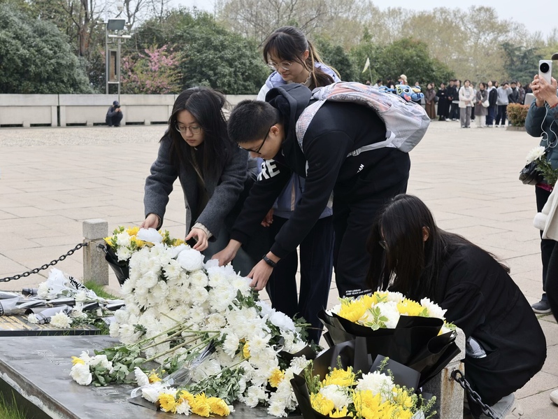 抵达雨花台烈士陵园后,全体成员在庄严肃穆的烈士纪念碑前,敬献鲜花、默哀致敬,表达对先烈们的追思。默哀结束后,学生代表将亲手制作的白花敬献于碑前,向革命先烈致以最崇高的敬意。