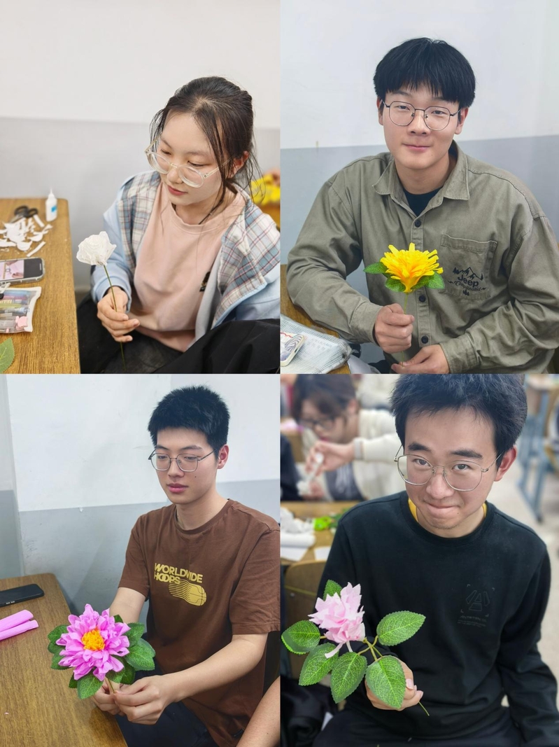 活动尾声,同学们领取环保再生纸与非遗剪纸工具包,参照教学视频制作“英雄花”。每一片花瓣的折叠都蕴含匠心:六瓣造型象征烈士精神六维度(忠诚、勇敢、奉献、坚韧、无私、爱国),花心嵌入手写追思卡,记录同学们对英烈的敬仰之语。此次活动既是一堂生动的历史文化课,更是一次深刻的思想淬炼。不仅强化了学生对中华优秀传统文化与红色精神的理解,更搭建起“知、情、意、行”一体化教育链路。
