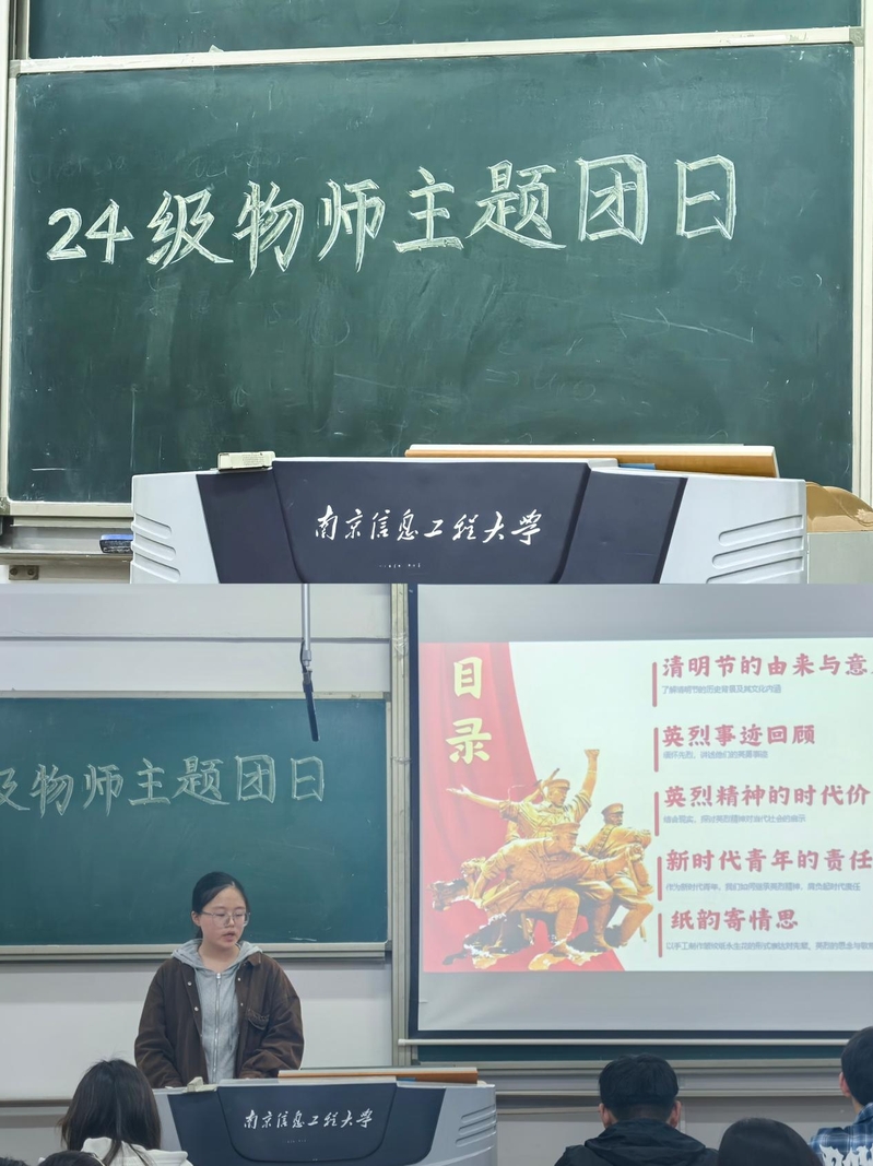 活动伊始,团支书王怡宁以“清明节的千年传承与当代价值”为题,从历史脉络切入,系统阐释清明节的起源与演变。她结合《岁时百问》《淮南子》等典籍记载,解读清明“祭祖追远”的文化内核,并延伸至其“慎终追远、民德归厚”的社会意义。他强调:“清明不仅是缅怀逝者的日子,更是传承民族精神的纽带,青年一代需以文化自信筑牢信仰之基。”
