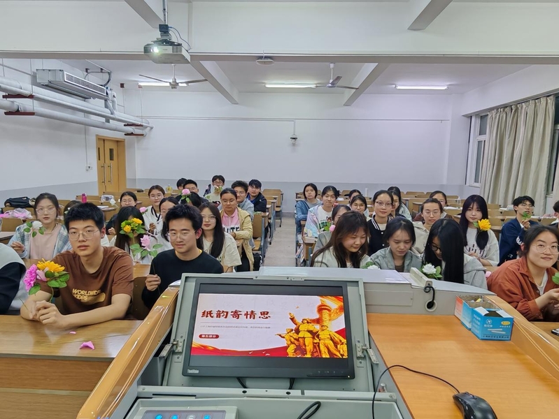 为缅怀先烈崇高精神,发挥新时代青年使命担当作用,4月7日晚,教师教育学院2024级物理学师范(1)班于揽江楼N305教室举行“缅怀先烈,不忘担当”主题团日活动。活动由团支书王怡宁主持,全体同学参与,通过“溯源清明文化”“追忆英雄事迹”“共话青年责任”“手作纸花寄哀思”等环节,将历史传承与时代使命深度融合,展现青年学子对家国情怀的深刻理解。