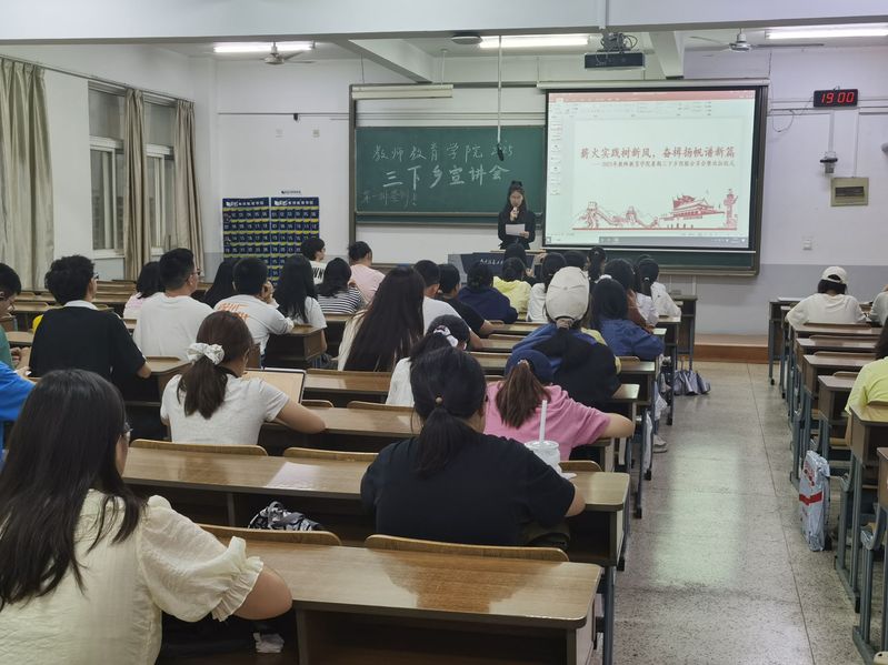 为引领师范学子勇担育人使命,助力他们在社会实践“行走的育人课堂”里拓宽视野、锤炼技能、奉献社会,教师教育学院于6月27日晚,在揽江楼N205 教室成功举办2025年暑期“三下乡”社会实践动员会暨经验分享会。