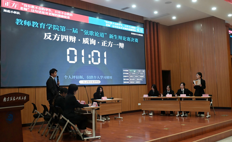 本届赛事由南京信息工程大学教师教育学院团委主办,教师教育学院辩论队承办。本届赛事共有8支队伍,经过初赛和半决赛的激烈角逐,“海底小纵队”与“我说你不行你说队”脱颖而出,问鼎决赛。这不仅是一场辩论技巧的较量,更是一场未来教育工作者对自身职业价值与责任的深度思辨。