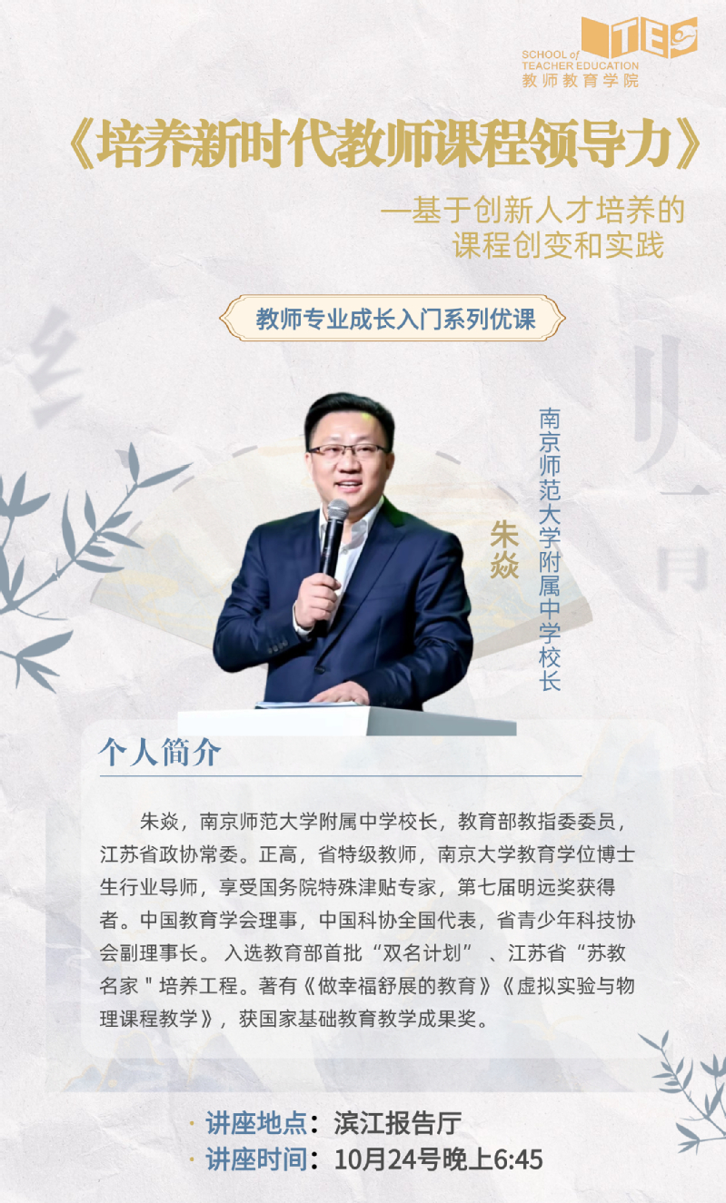 第31期:《培养新时代教师课程领导力》—基于创新人才培养的课程创变和实践