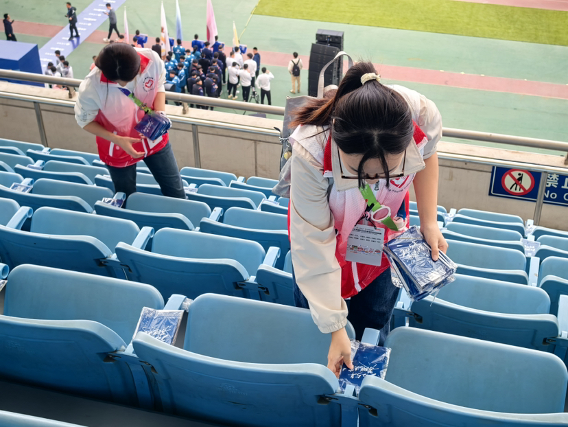 南京青奥村外国语小学教师朱琳,则以教育工作者的细致,守护着92-99区观众的饮水需求。作为第二次参与“苏超”志愿服务的“熟手”,她当天下午3点便抵达奥体中心一楼物料处,和伙伴们一起将饮用水、纸杯等物资搬运至93区饮水点,随后又分头将应援棒逐一发放到负责区域的每个座位上。“得赶在4点半观众入场前,把饮水点的水杯都续满,确保大家随时能喝到水。”朱琳说,比赛期间,她和团队轮班值守饮水点,既保证供水不断档,还主动帮找不到座位的球迷核对区域、指引路线;赛后又细致检查负责区域的座位,收拾遗留垃圾。