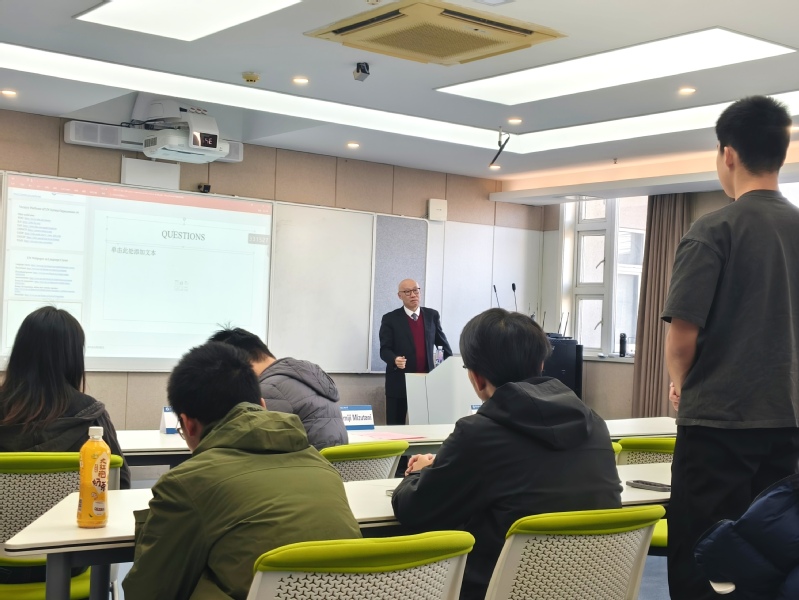熊院长首先代表学院致辞,阐述了当今全球化时代背景下对于国际组织与国际人才的迫切需要、通用语言沟通/国际交流互鉴的重要性。同学们聚精会神,对Tomiji Mizutani老师的讲座充满了期待。