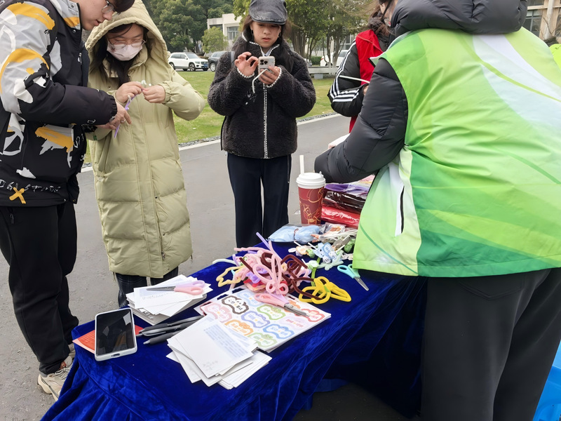 志愿集市先行,创意传递暖心善意。3月4日,尚贤楼前的志愿集市热闹开启,学院精心设置的“故事盲盒”与“扭出温暖,棒送童心”两大特色摊位,成为校园里的温暖打卡点,吸引众多师生踊跃参与。“故事盲盒”摊位上,印着支教小故事的明信片搭建起爱心纽带,同学们品读着志愿者与孩子们的温馨瞬间,在卡片背面写下“希望你像故事里的小朋友一样勇敢”等真挚祝福,将青春善意凝于笔尖;“扭扭棒手工”摊位前,色彩缤纷的材料让创意绽放,在志愿者的引导下,师生们巧手翻飞,将普通扭扭棒打造成独具特色的手工艺品,不少同学主动将作品留存,愿让这份心意随支教奔赴远方。这些承载着温暖的明信片与手作,将作为支教礼物送到孩童手中,让南信大的青春温度点亮童心。